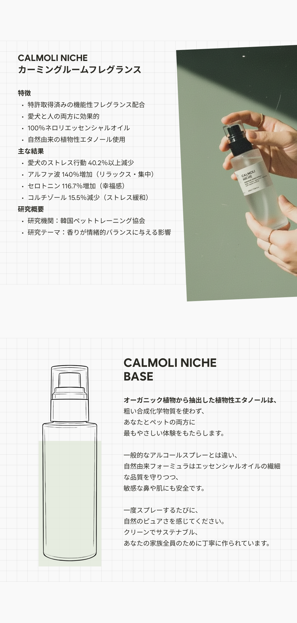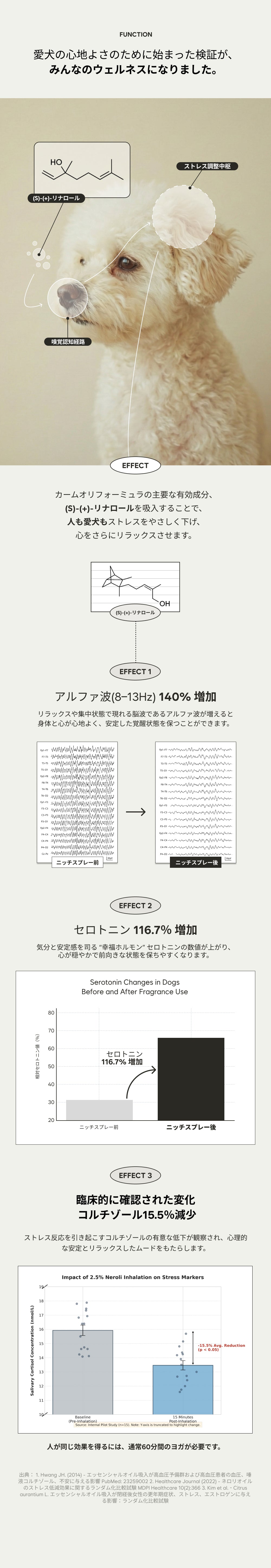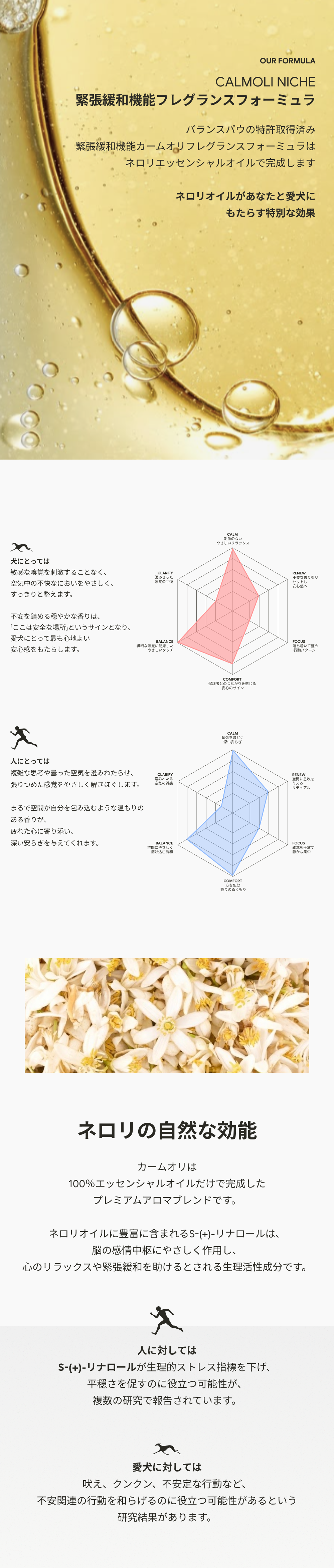 このスプレーは、100%天然の植物由来成分のみで作られています。植物から生まれた発酵アルコールと、100%天然のネロリ精油をベースに調合した独自の精油ブレンドを配合しました。刺激の強い合成物質や石油系成分を一切使用せず、大切な家族と一緒に過ごす空間を、よりクリーンで安全にリフレッシュします。