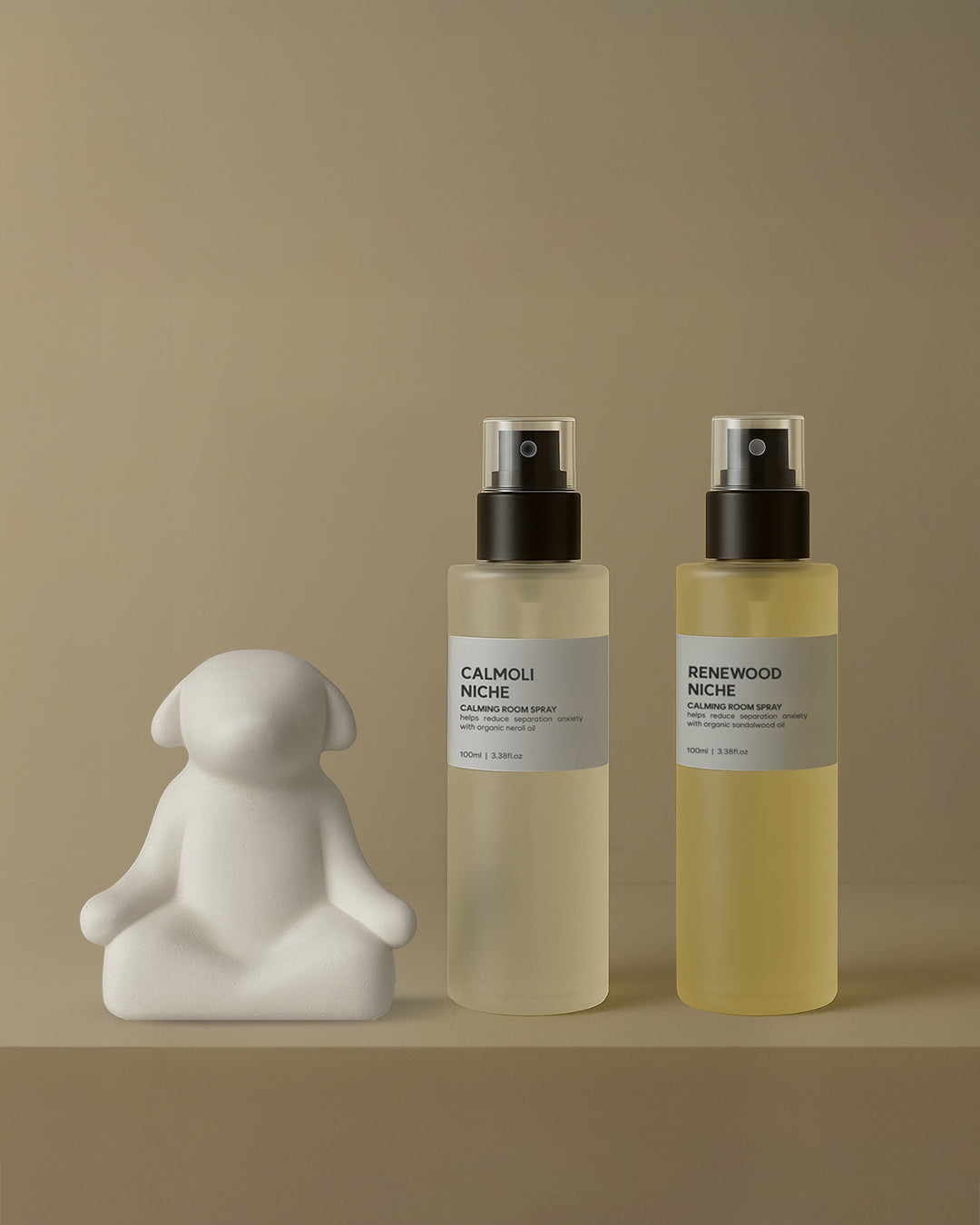 飼い主さんと愛犬のために、心を落ち着かせるルームスプレー2本と、手作りのセラミックストーンディフューザーを詰め合わせました。
