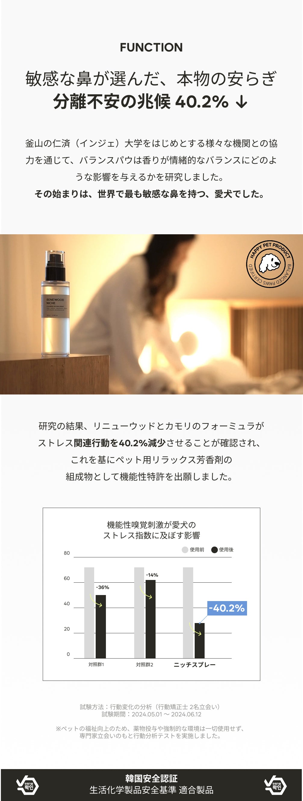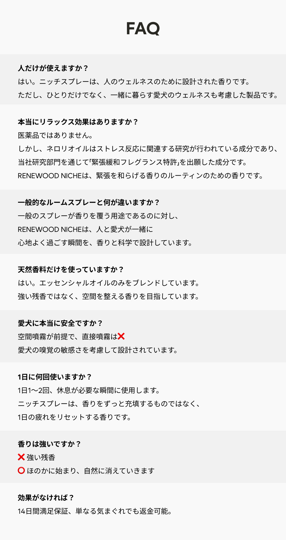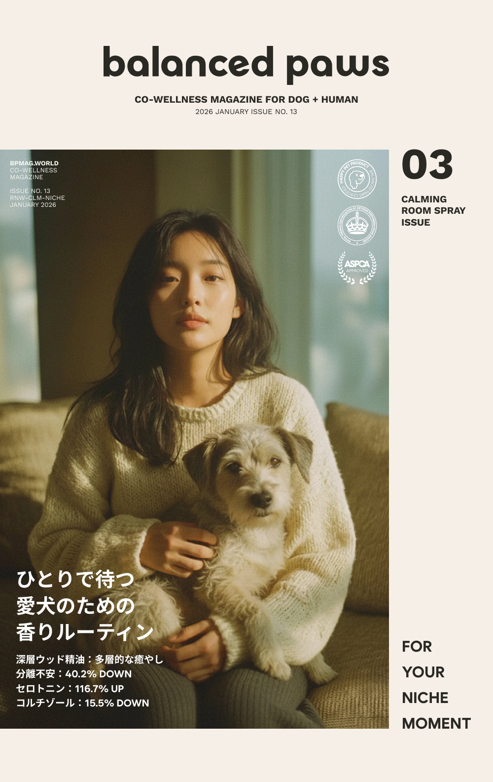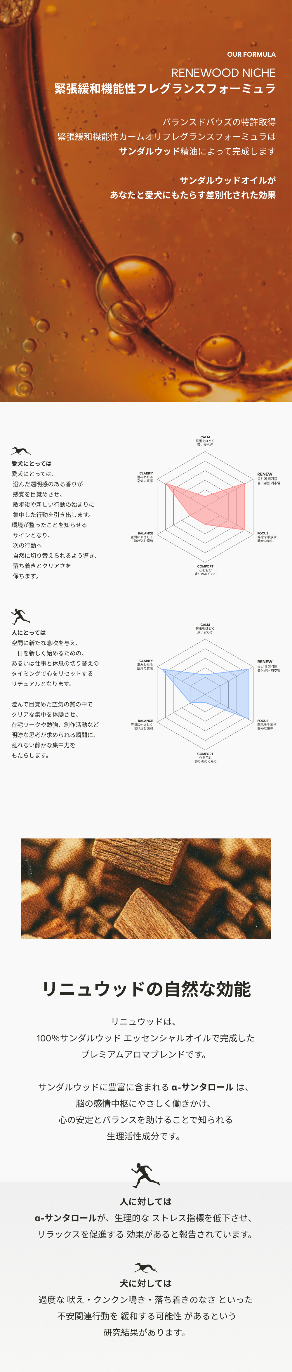 RENEWOOD NICHE セットは、愛犬の不安を瞬時に和らげ、空間に洗練された上質さを添えるために設計されたニッチフレグランス・ルームスプレーです。